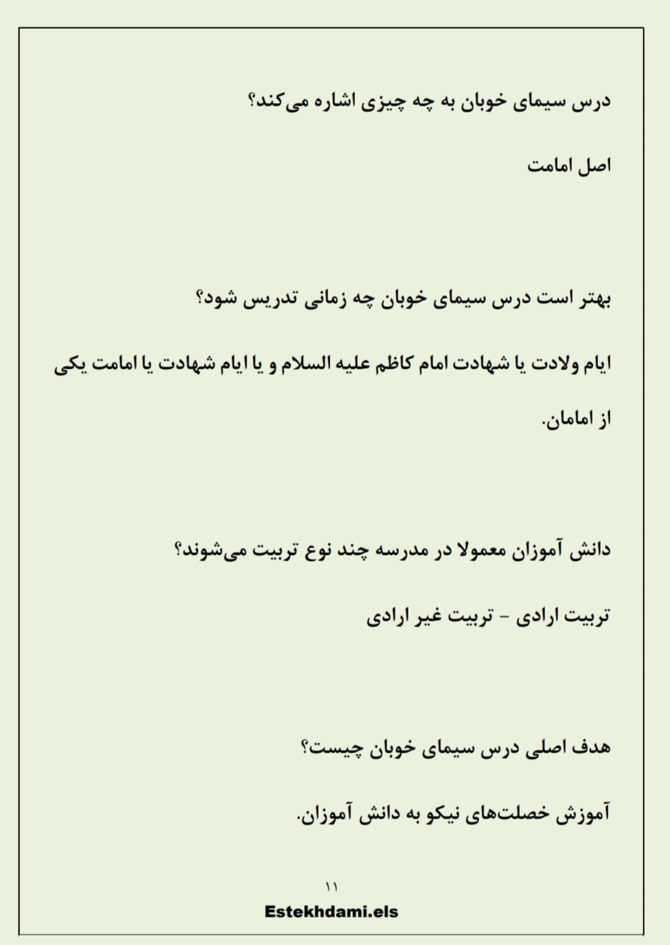 جزوه راهنمای معلم هدیه های آسمان که هم اکنون در اختیار شما قرار داده خواهد شد، با بیشترین دقت ممکن از منبع اصلی استخراج شده است، به صورتی که پوشش ۱۰۰ درصدی سوالات را در آزمون استخدامی پیش رو داشته باشد.با مطالعه این جزوه در مدت زمان کم باقیمانده میتوانید به آمادگی و تسلط کامل در این درس دست یابید. ✓این منبع در دو نسخه مطالعه با موبایل و نسخه پرینت در اختیار شما قرار داده خواهد شد