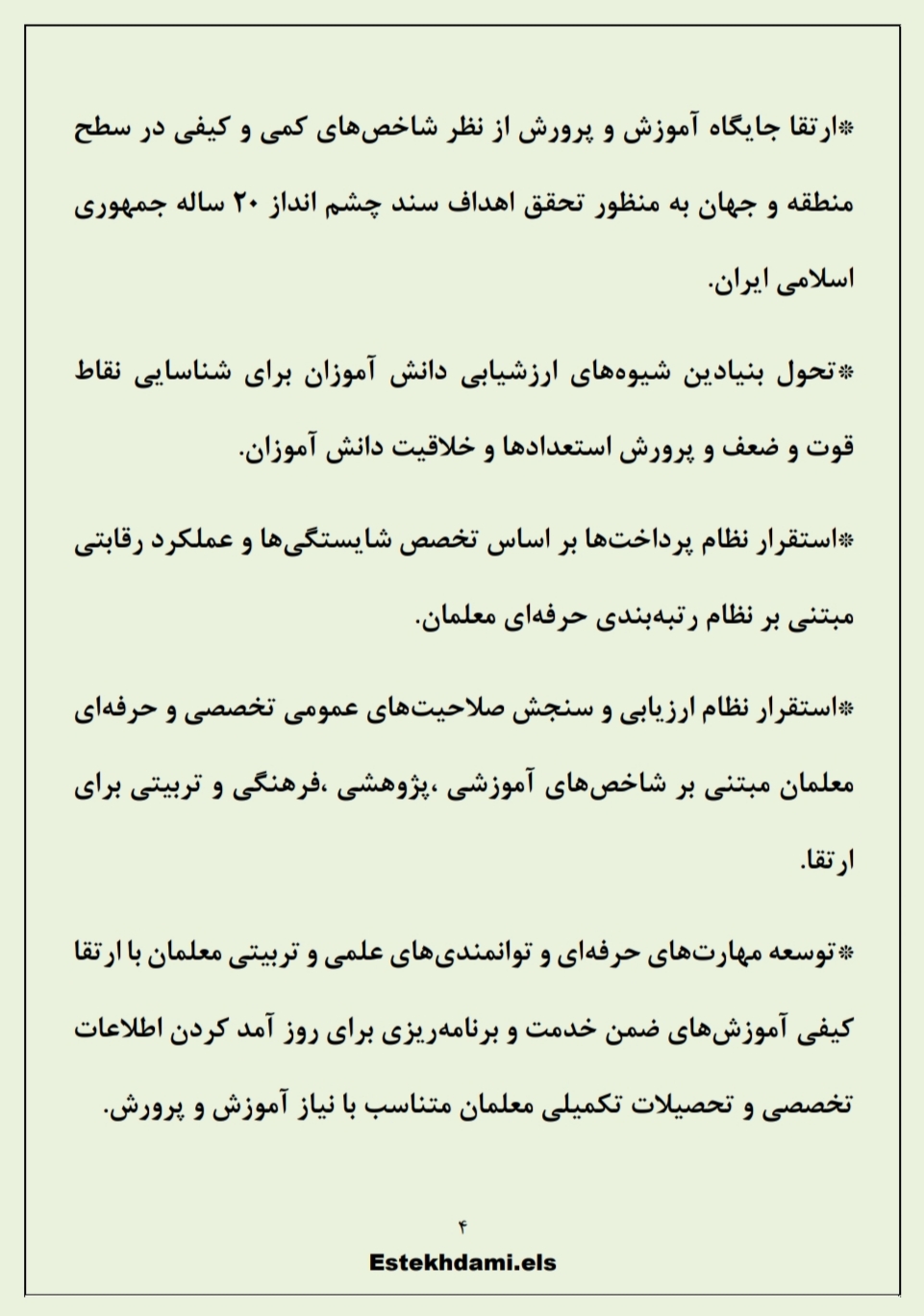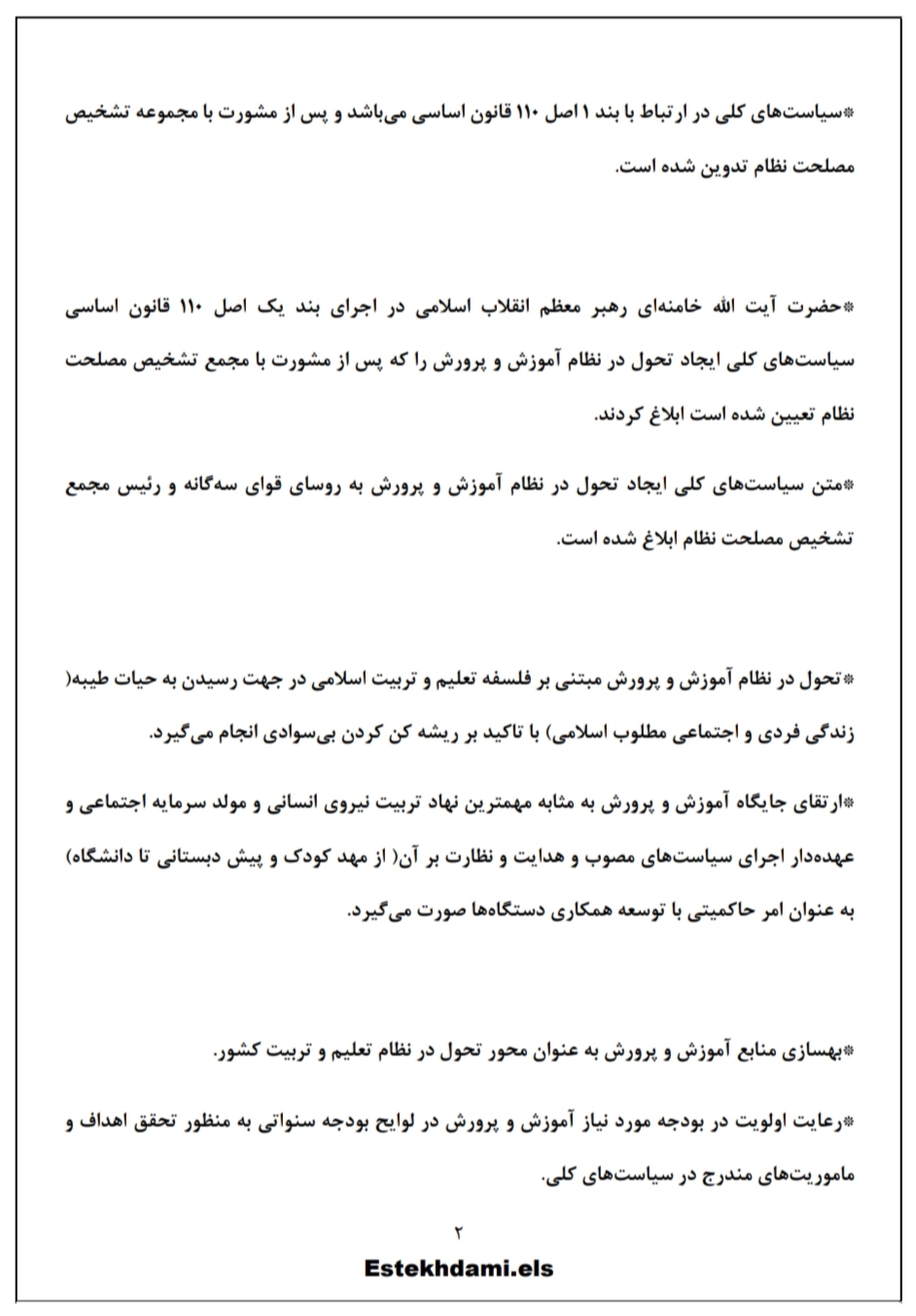 جزوه درس سیاست های کلی ایجاد تحول در آموزش وپرورش که هم اکنون در اختیار شما قرار داده خواهد شد، با بیشترین دقت ممکن از منبع اصلی استخراج شده است، به صورتی که پوشش ۱۰۰ درصدی سوالات را در آزمون استخدامی پیش رو داشته باشد.با مطالعه این جزوه در مدت زمان کم باقیمانده میتوانید به آمادگی و تسلط کامل در این درس دست یابید. ✓این منبع در دو نسخه مطالعه با موبایل و نسخه پرینت در اختیار شما قرار داده خواهد شد