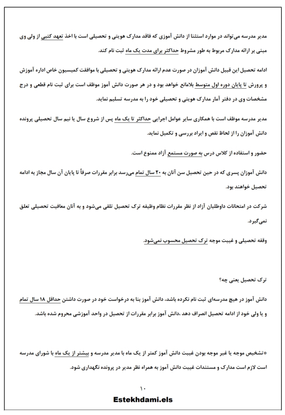 جزوه درس آیین نامه اجرایی مدارس که هم اکنون در اختیار شما قرار داده خواهد شد، با بیشترین دقت ممکن از منبع اصلی استخراج شده است، به صورتی که پوشش ۱۰۰ درصدی سوالات را در آزمون استخدامی پیش رو داشته باشد.با مطالعه این جزوه در مدت زمان کم باقیمانده میتوانید به آمادگی و تسلط کامل در این درس دست یابید. ✓این منبع در دو نسخه مطالعه با موبایل و نسخه پرینت در اختیار شما قرار داده خواهد شد