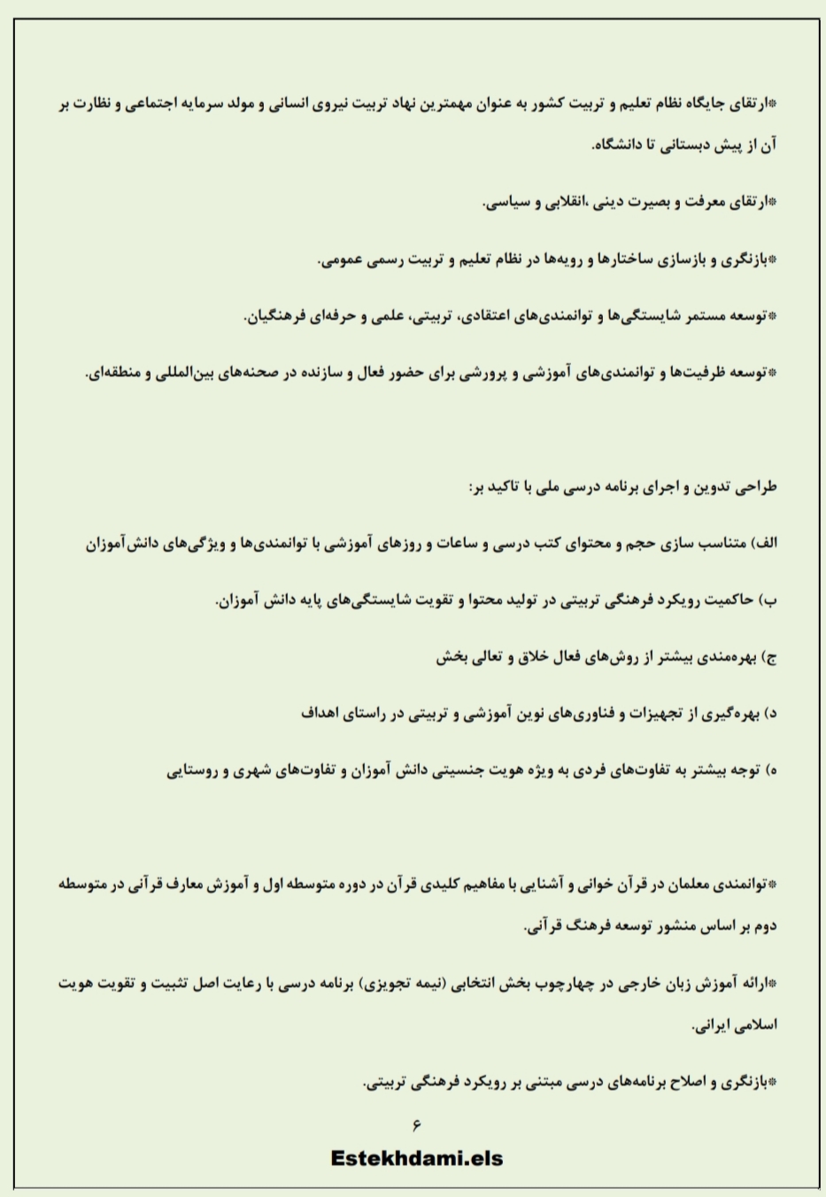 جزوه درس سند تحول بنیادین که هم اکنون در اختیار شما قرار داده خواهد شد، با بیشترین دقت ممکن از منبع اصلی استخراج شده است، به صورتی که پوشش ۱۰۰ درصدی سوالات را در آزمون استخدامی پیش رو داشته باشد.با مطالعه این جزوه در مدت زمان کم باقیمانده میتوانید به آمادگی و تسلط کامل در این درس دست یابید. ✓این منبع در دو نسخه مطالعه با موبایل و نسخه پرینت در اختیار شما قرار داده خواهد شد