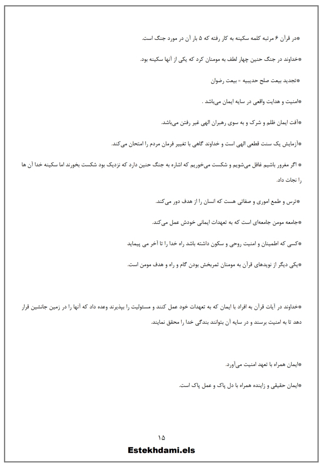 جزوه درس طرح کلی اندیشه اسلامی در قرآن که هم اکنون در اختیار شما قرار داده خواهد شد، با بیشترین دقت ممکن از منبع اصلی استخراج شده است، به صورتی که پوشش ۱۰۰ درصدی سوالات را در آزمون استخدامی پیش رو داشته باشد.با مطالعه این جزوه در مدت زمان کم باقیمانده میتوانید به آمادگی و تسلط کامل در این درس دست یابید. ✓این منبع در دو نسخه مطالعه با موبایل و نسخه پرینت در اختیار شما قرار داده خواهد شد